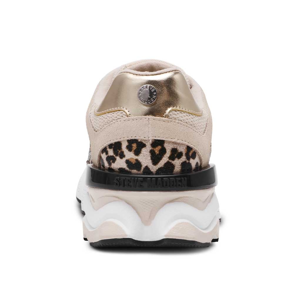De Steve Madden Speeder Leo Beige is een opvallende dames sneaker die jouw zomerse outfits direct een upgrade geeft. De combinatie van goud, beige en panterprint zorgt voor een unieke uitstraling, terwijl de roze en groene veters een verrassend en speels detail toevoegen. Deze sneaker is ideaal voor wie wil opvallen zonder in te leveren op stijl.